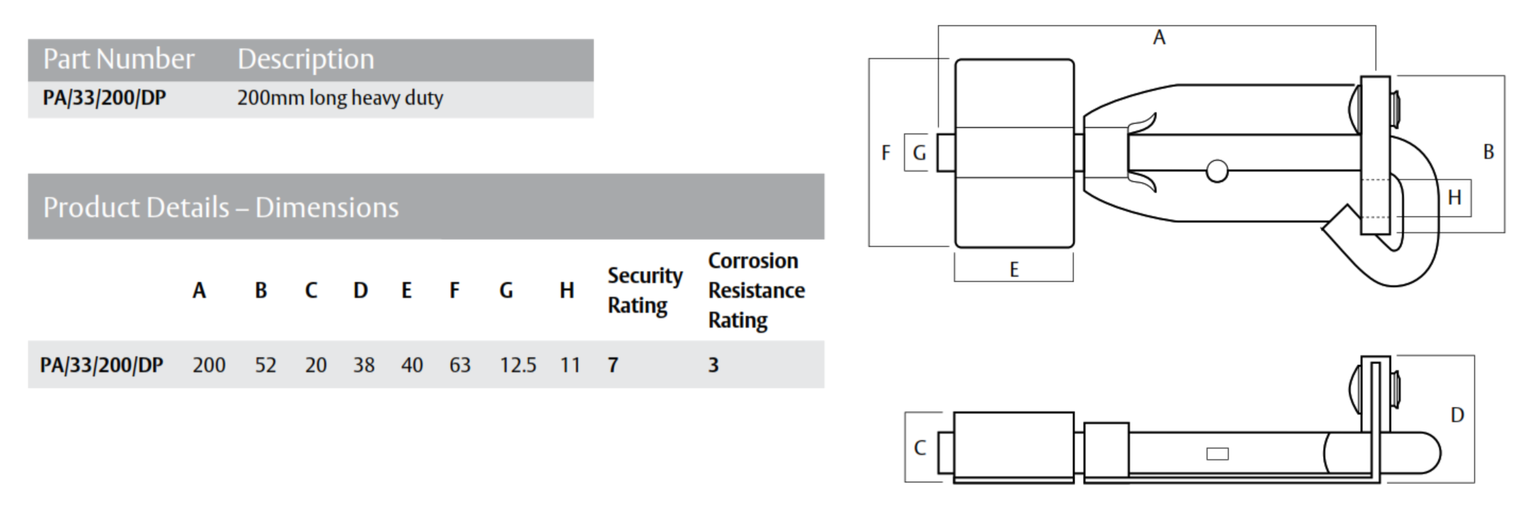 The Lockwood PA/33/200/DP is a 200 mm heavy duty padbolt designed for both barrier and deterrent applications. Constructed with hardened steel and supplied with tamper-resistant fasteners, this padbolt offers high strength and reliable performance for securing gates, doors, and external enclosures.