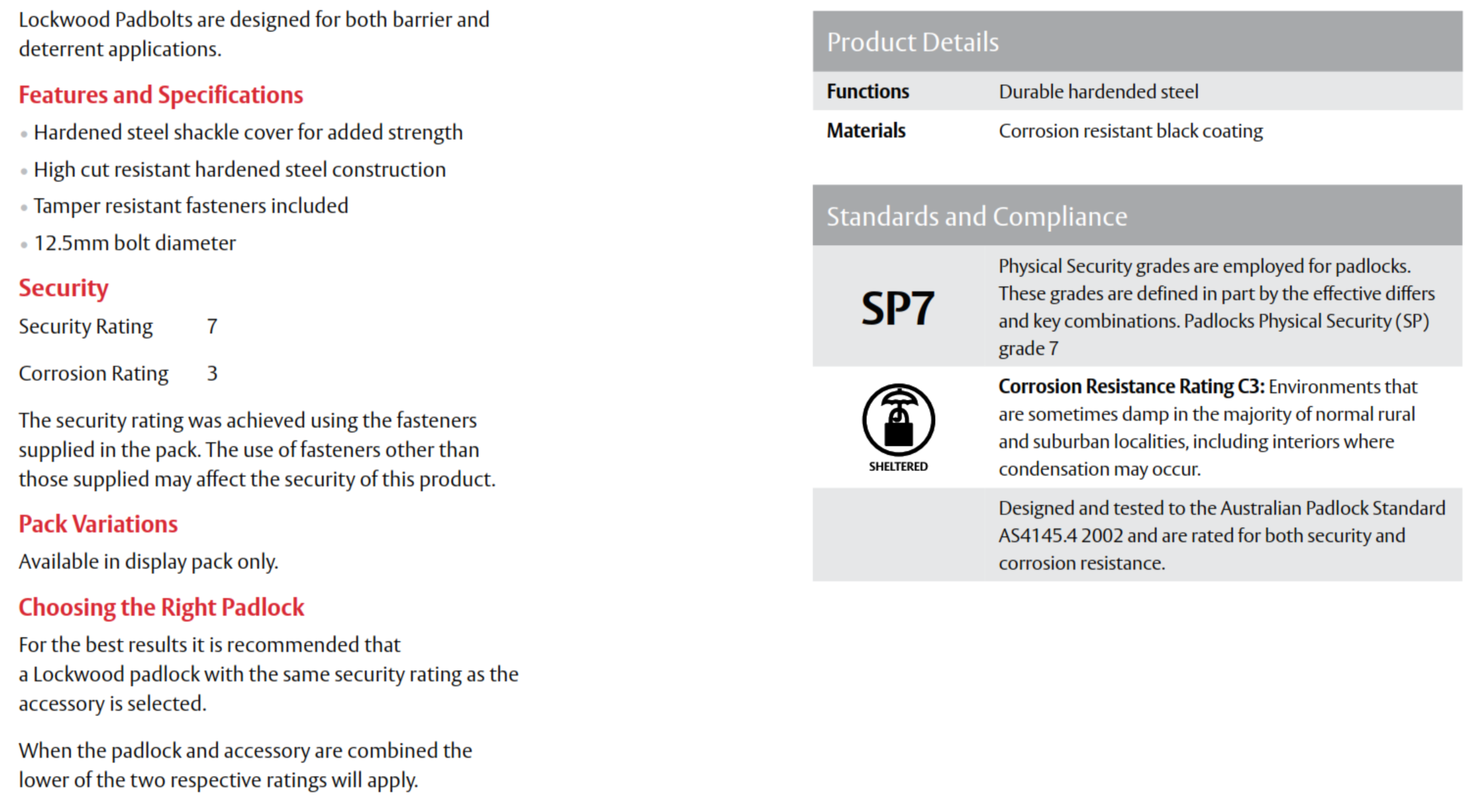 - Recommended for use with Lockwood padlocks of matching security rating.