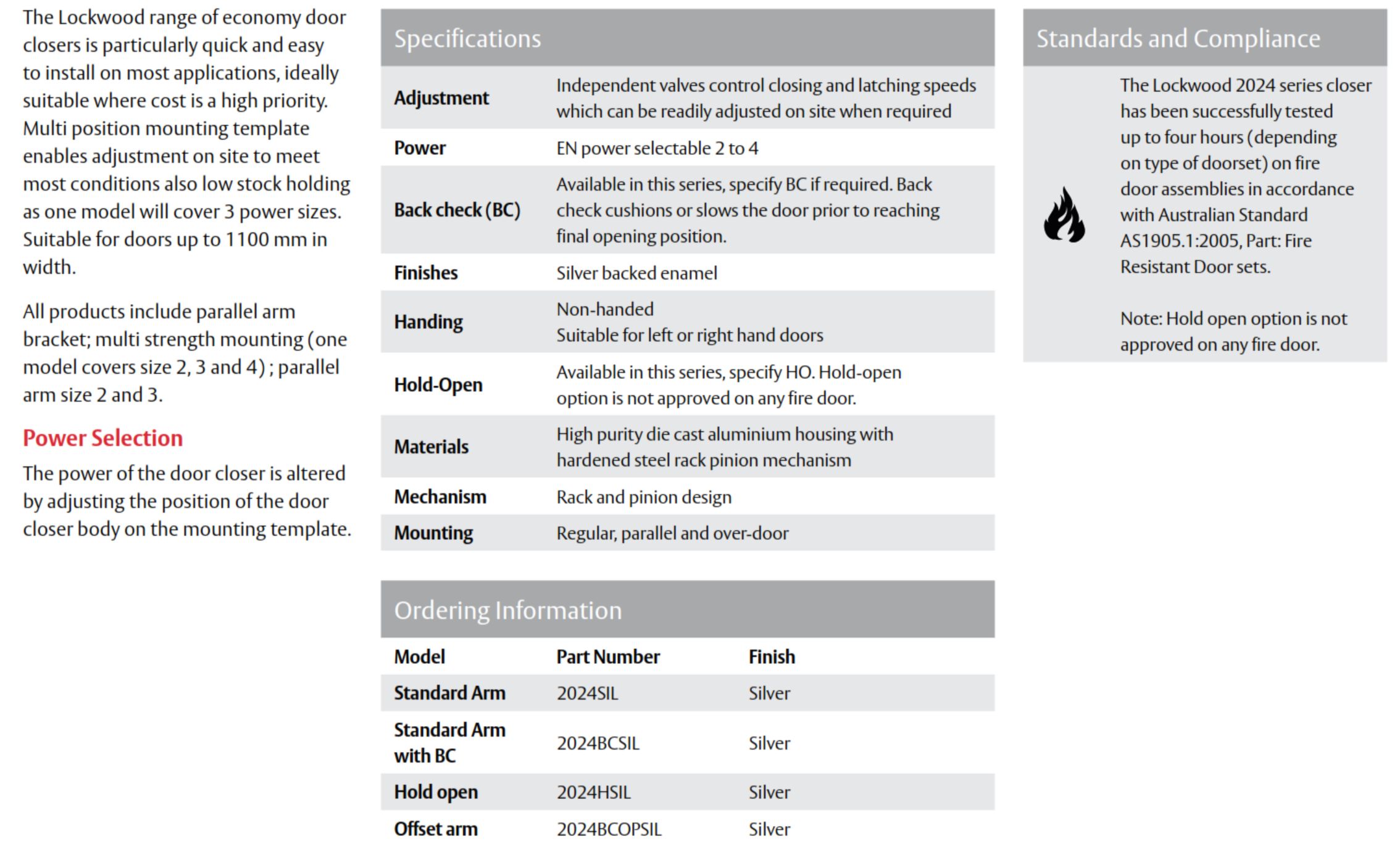 | Lockwood Surface Mounted Door Closers Catalogue |