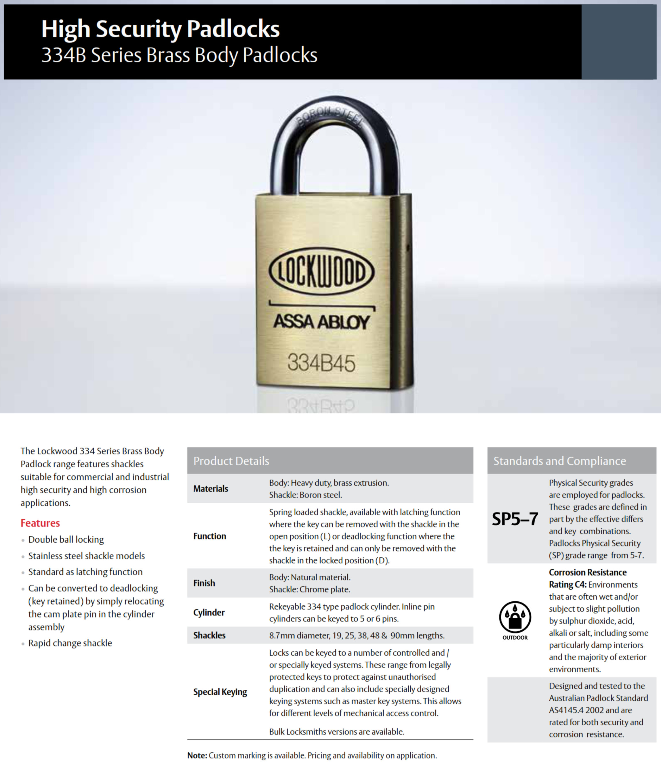 - Compliance: Designed and tested to Australian Padlock Standard AS4145.4:2002.
