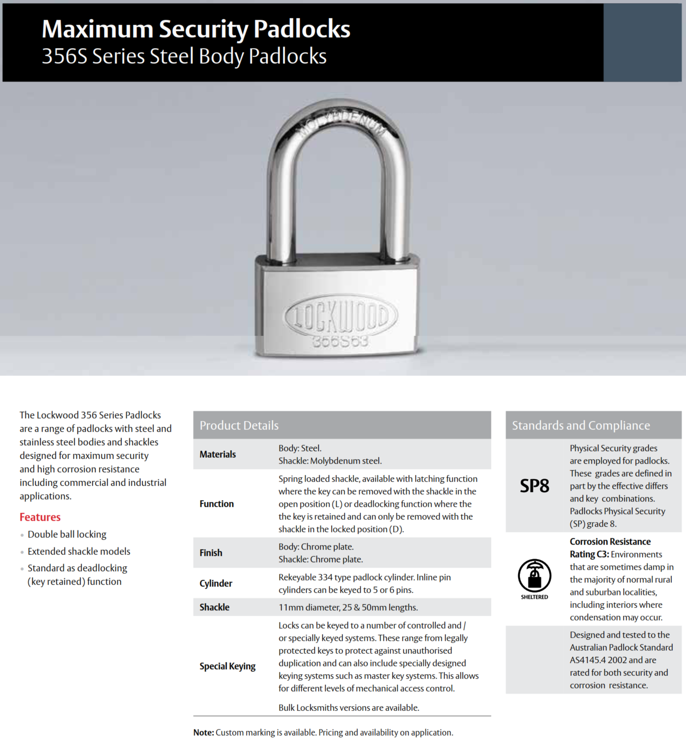 - Compliance: Designed and tested to Australian Padlock Standard AS4145.4:2002.