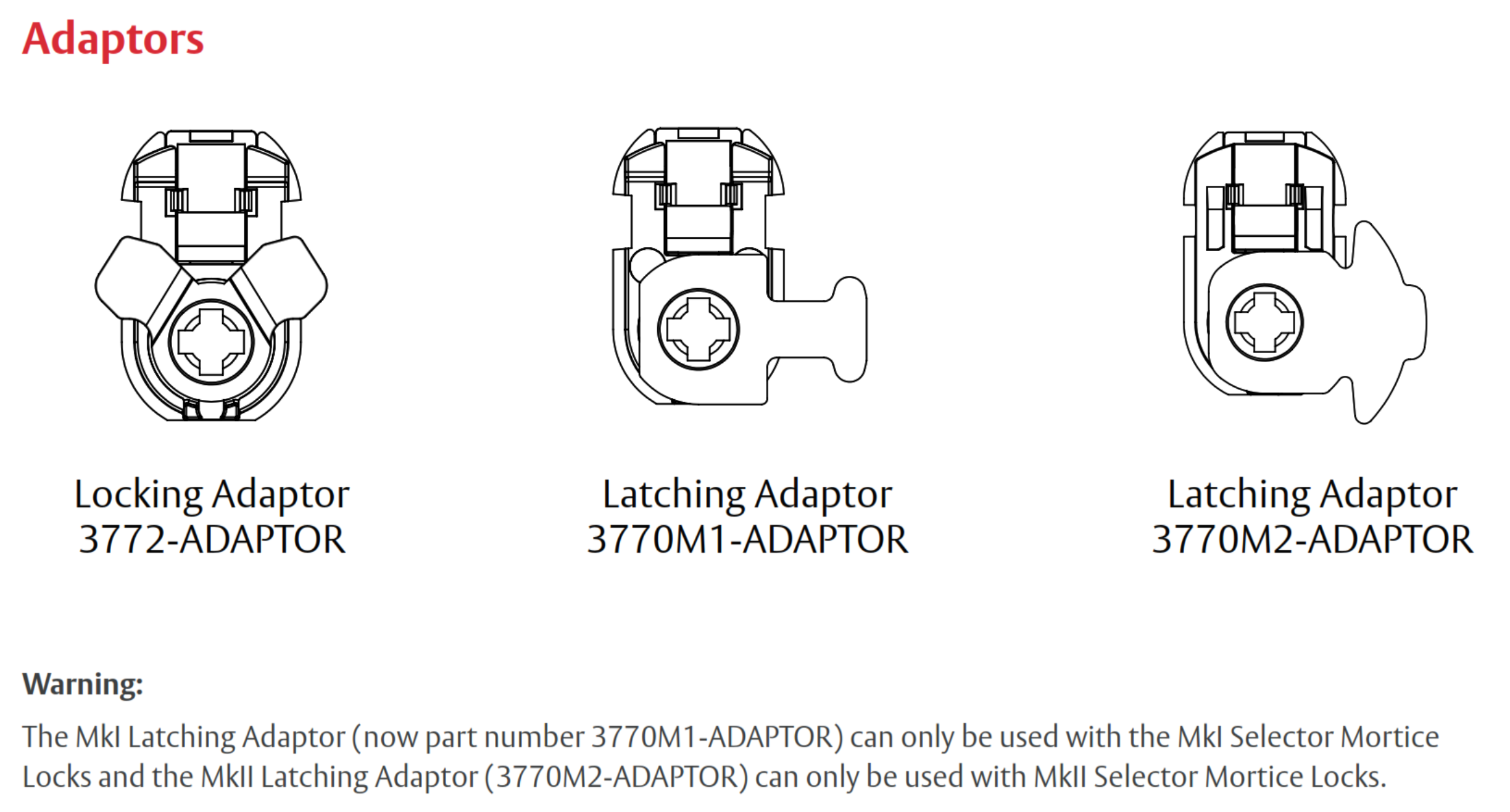 Selector® 3772 MkII Escape Locks — Item Code Family
