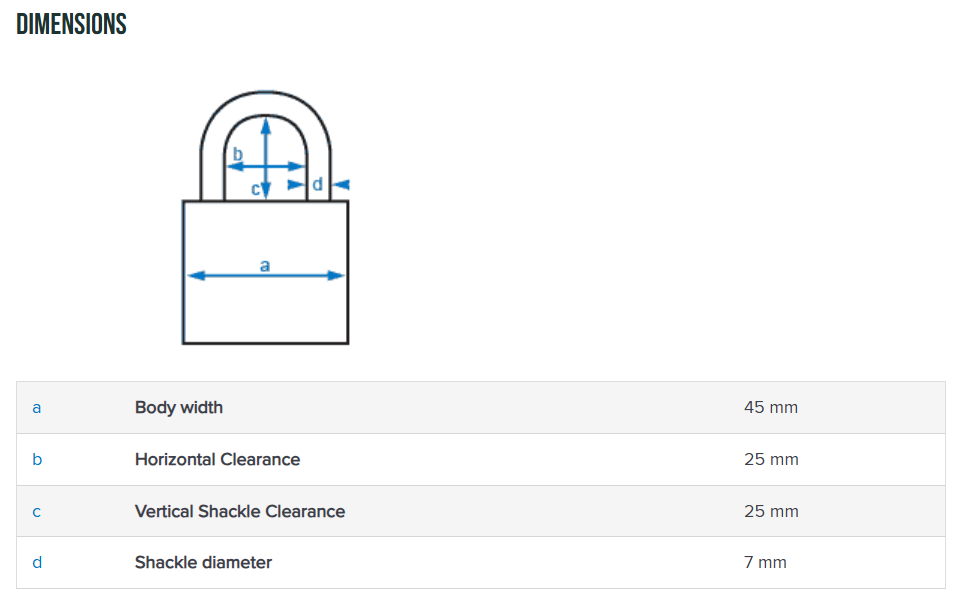 - 45 mm padlocks provide a good balance between compact size and increased strength.