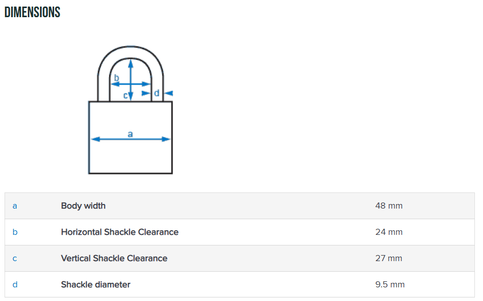 - Shackle Diameter: 9.5 mm