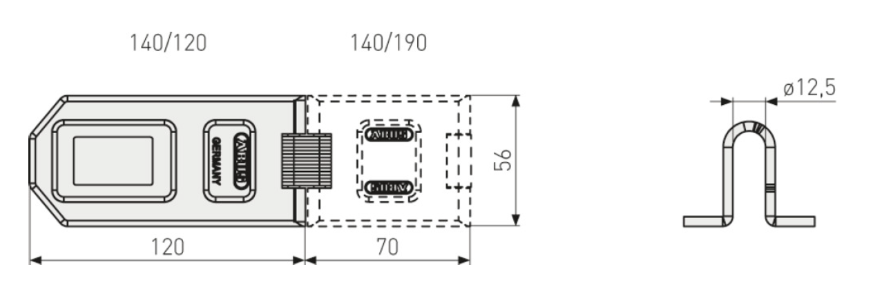 The ABUS 140/190 is a Diskus-compatible hasp and staple locking set supplied as a complete solution with an ABUS Diskus padlock. Its extended 190 mm hasp length provides a wider fixing span, while the special staple design protects the padlock shackle so that, when combined with a Diskus padlock, shackle attack is virtually impossible.