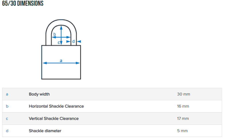 | Padlock Model | ABUS 65/30 |
