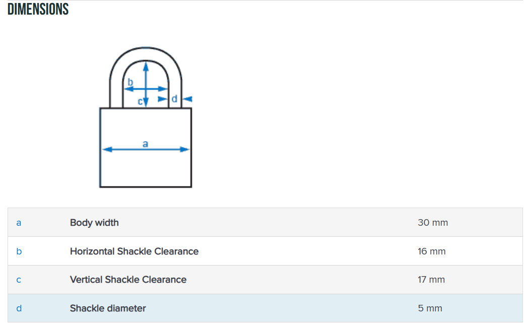 Specifications – Padlock