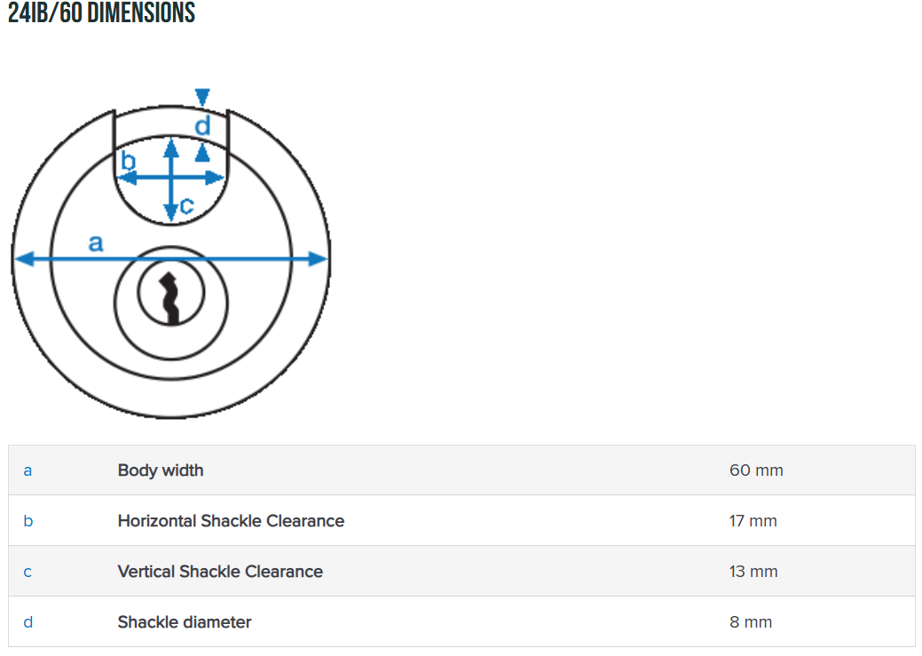 | Padlock Model | ABUS 24IB/60 Diskus |