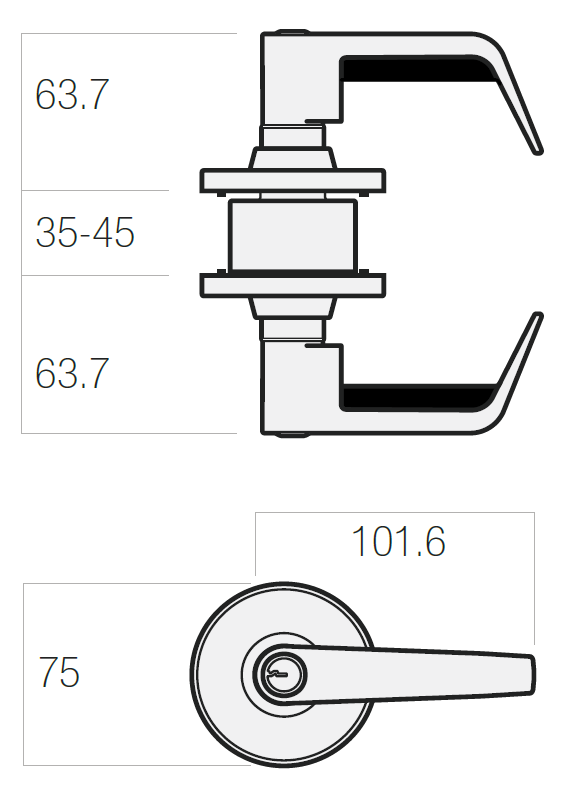 - Entrance function with keyed external lever.