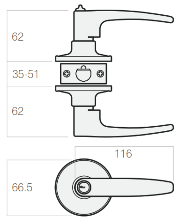 - Entrance function with key operation from the outside and turn snib on the inside.