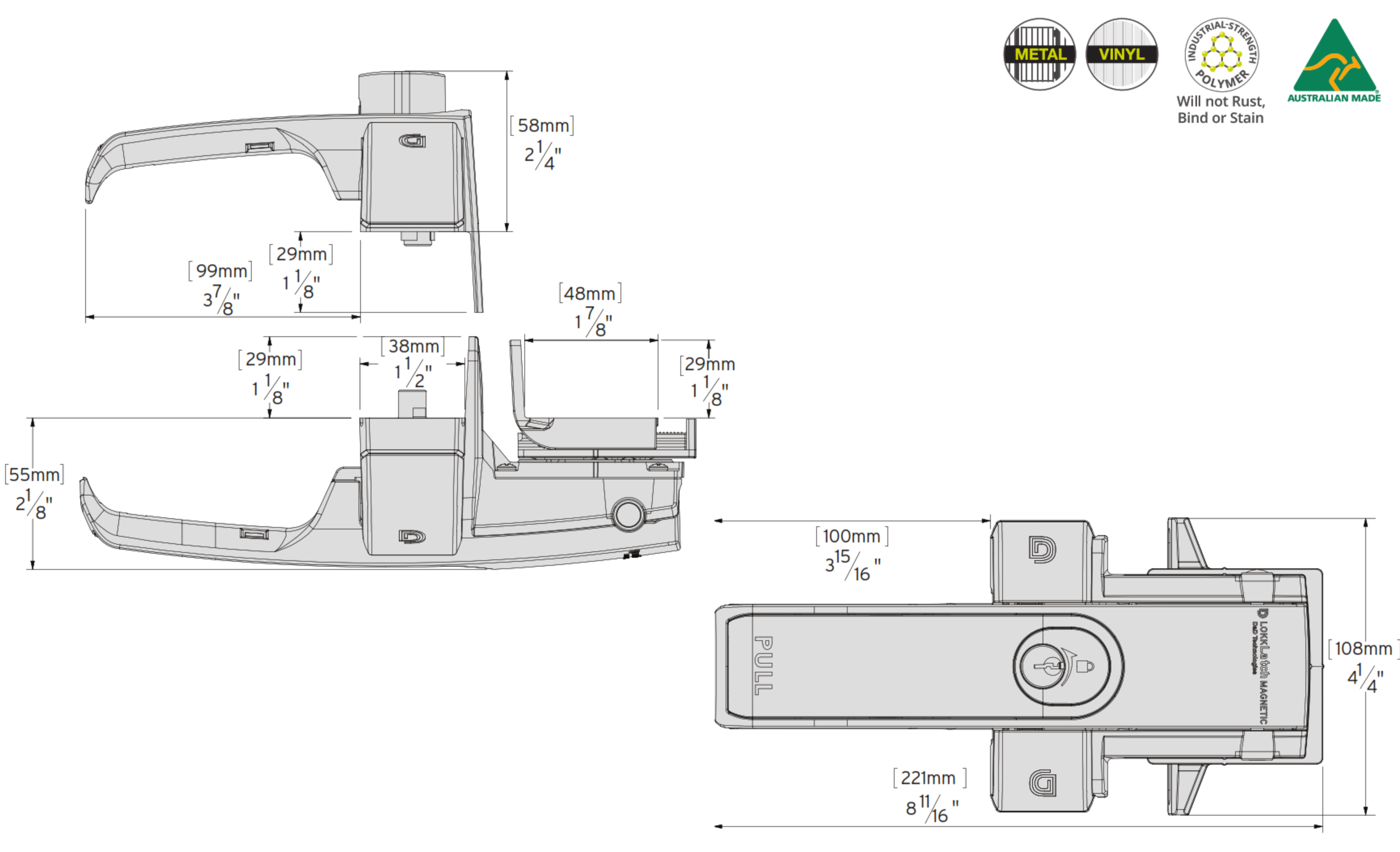 The D&D LokkLatch Magnetic Lockable Gate Latch combines patented magnetic self-latching technology with a double-sided key-lockable mechanism. Designed for gates requiring secure and convenient access control, it allows simple one-hand operation using intuitive push or pull handle action.