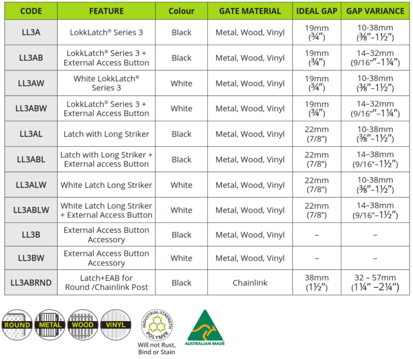 The D&D LokkLatch Regular Series 3 is a key-lockable, general-purpose gate latch designed for residential and light-use gates. It combines a gravity-style latching action with a keyed locking function, providing controlled access for home, garden, and backyard gate applications.