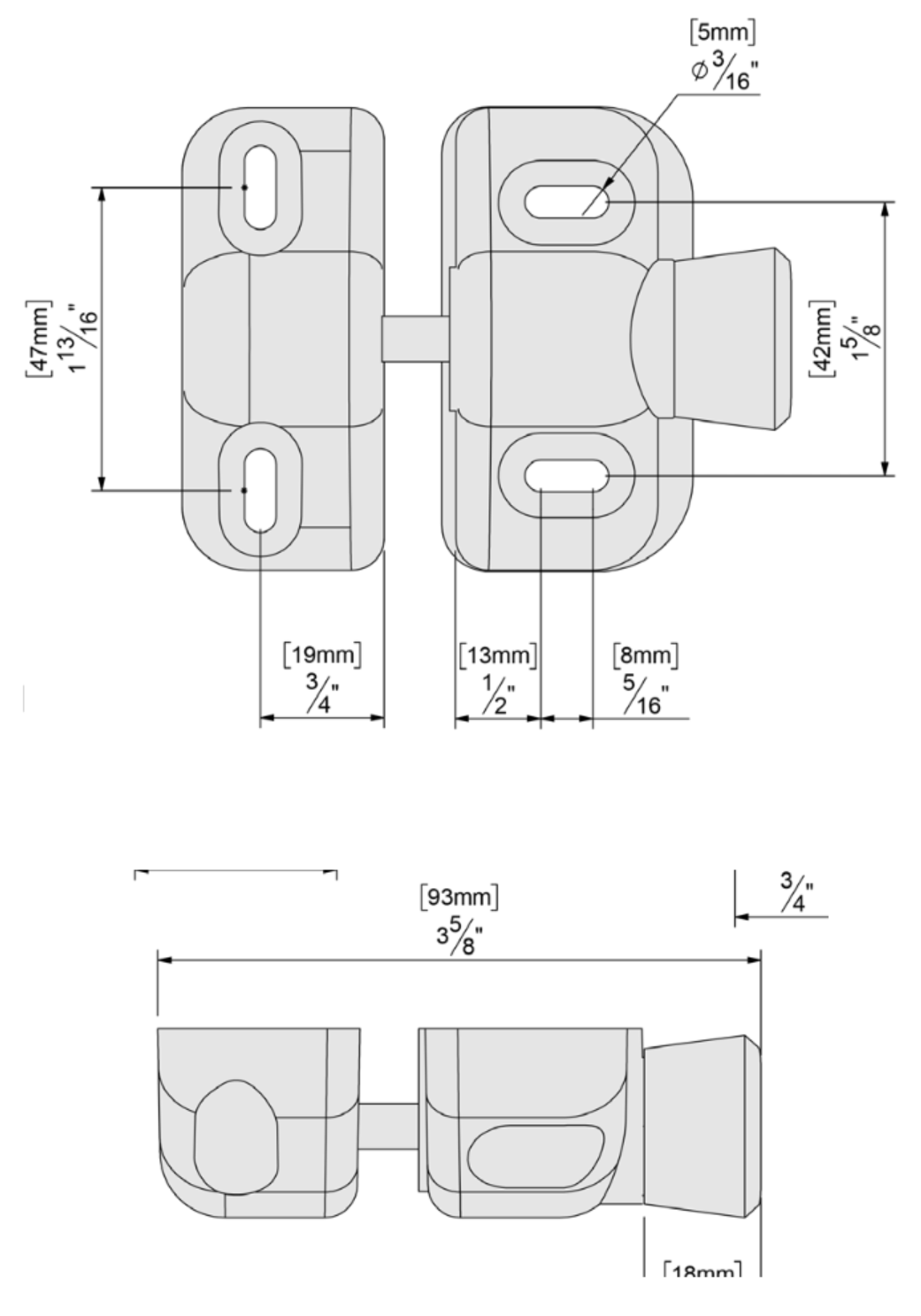 - Side pull non-locking magnetic gate latch.