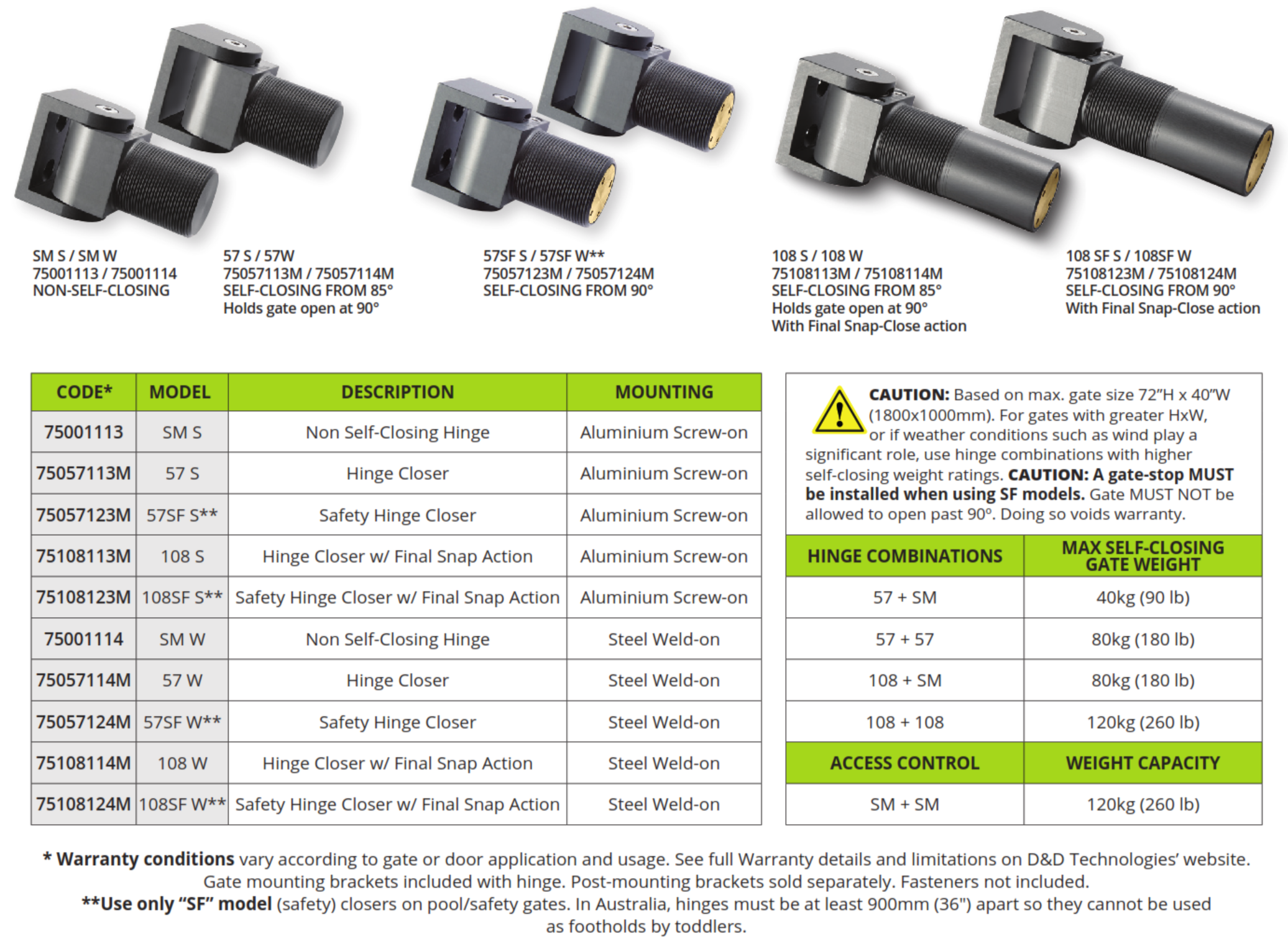 - For pool safety applications, a SureClose self-closing safety hinge must be used instead.