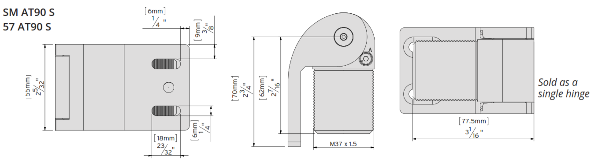 - Hold-open function from approximately 90 degrees to 180 degrees.