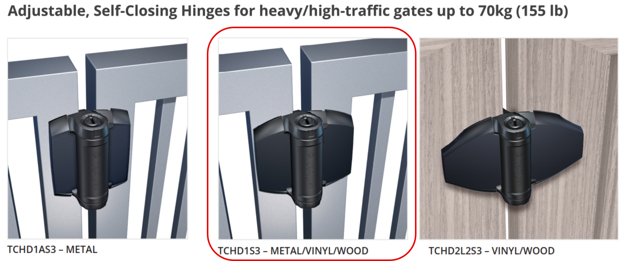 - Designed for gates up to 70 kg.