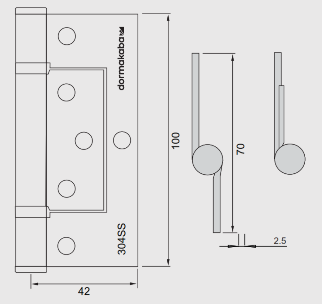 Dormakaba Fast Fix Hinge – Kinked – Ball Bearing – 100 mm x 70 mm x 2.5 mm