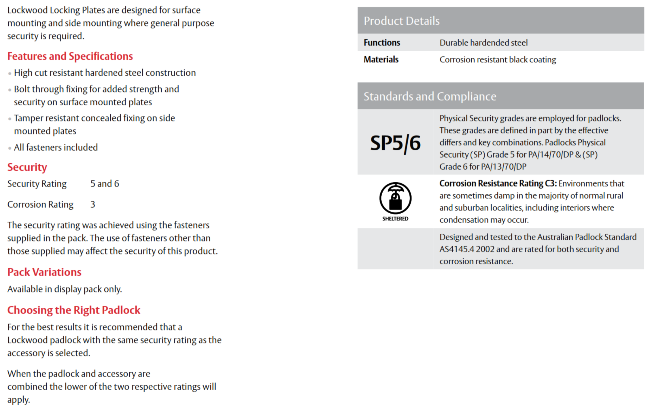 - Recommended for use with Lockwood padlocks of equal security grade.